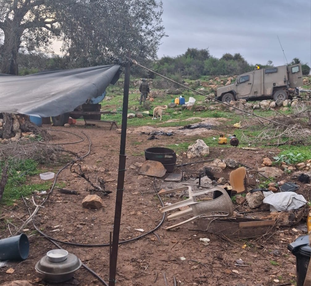 في يوم الجمعة الموافق 21.2.25، قرابة الساعة 5:00، وصلت مركبة عسكريّة إلى التجمّع وخرج منها أربعة جنود شرعوا في تخريب خيام التجمّع بالسكاكين وتدمير الأثاث والمعدّات الأخرى. بعد ذلك هدّدوا السكان بإحراق خيامهم مع سكّانها إذا لم يغادروا المكان في غضون أسبوع.