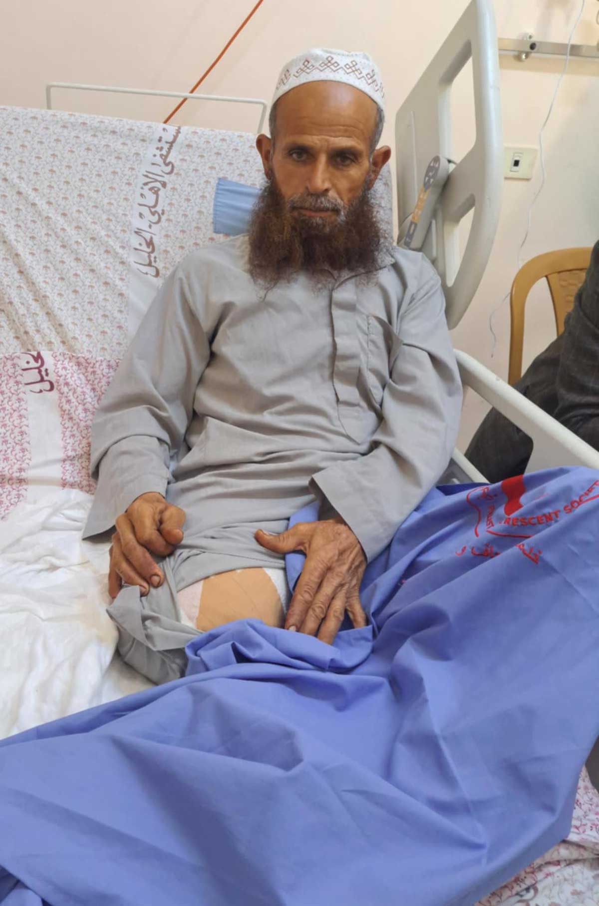 الشيخ سعيد في المستشفى في الخليل، بعد بتر ساقه. تصوير: منال الجعبري، بتسيلم