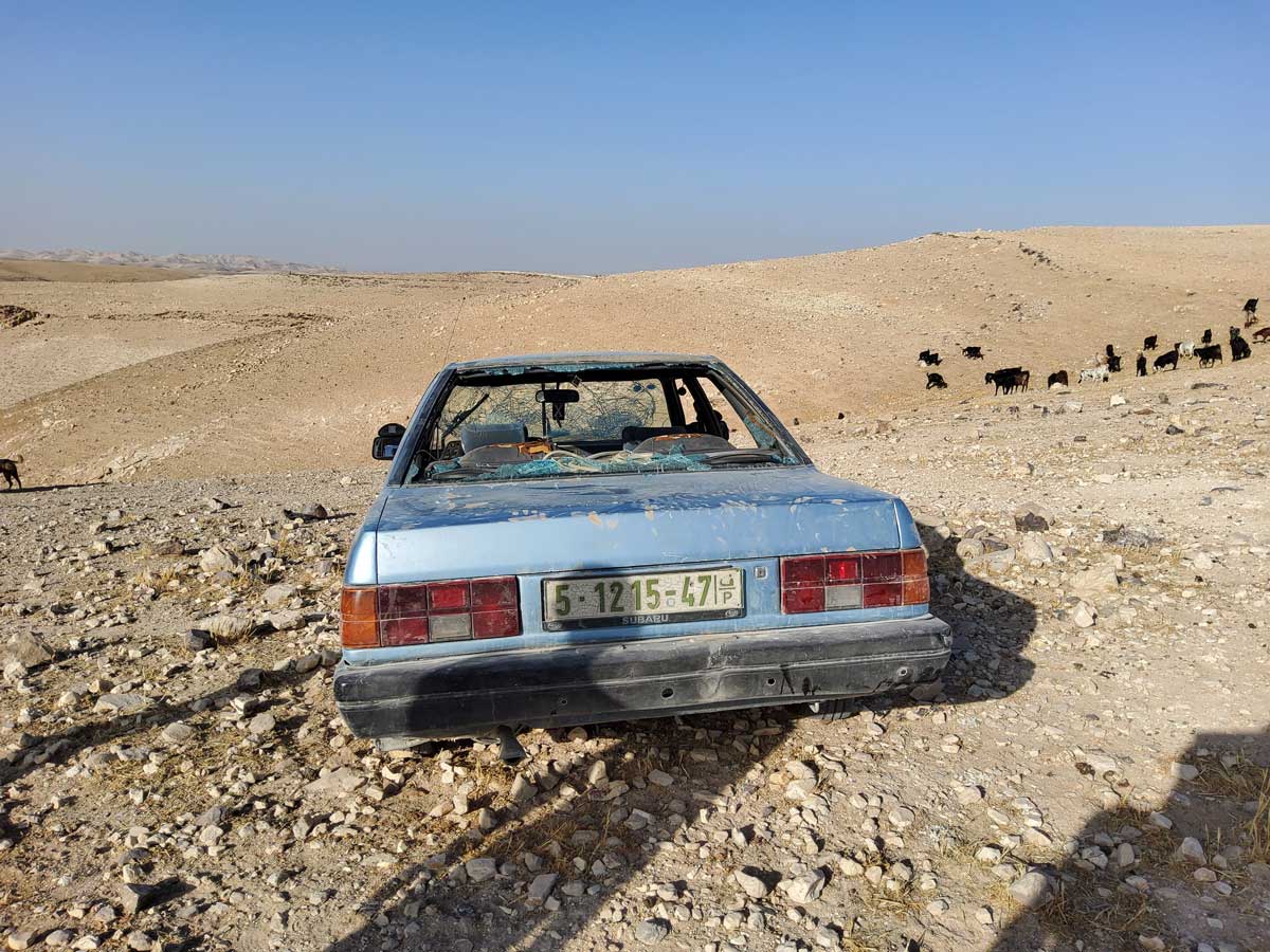 سيارة محمدو عبيات التي أتلفها المستوطنون. تصوير: عامر عاروري، بتسيلم، 25.5.25