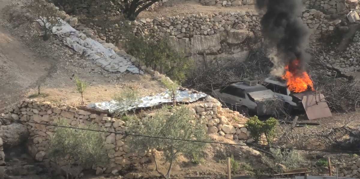 السيارات التي أحرقها المستوطنون. من فيديو توثيقيّ قدمه السكان مشكورين