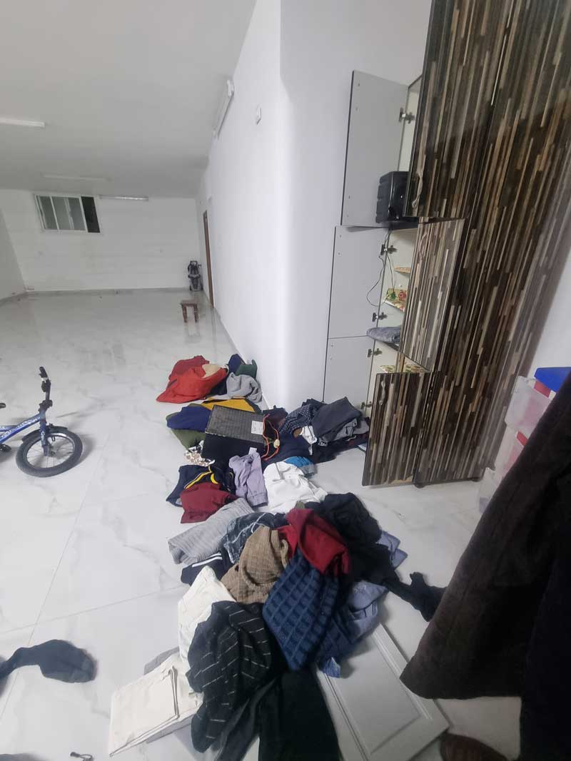 كانت شققنا تبدو وكأنّ زلزالاً قد ضربها. قلب الجنود جميع أثاثها ومزقوا الستائر وبعثروا كل ملابسنا على الأرض. قاموا أيضًا بإفراغ كلّ ما كان في خزائن المطبخ، رموا الأرز وغيره من الأطعمة على الأرض. لقد استغرقنا الأمر ثلاثة أيام لإعادة ترتيبها.