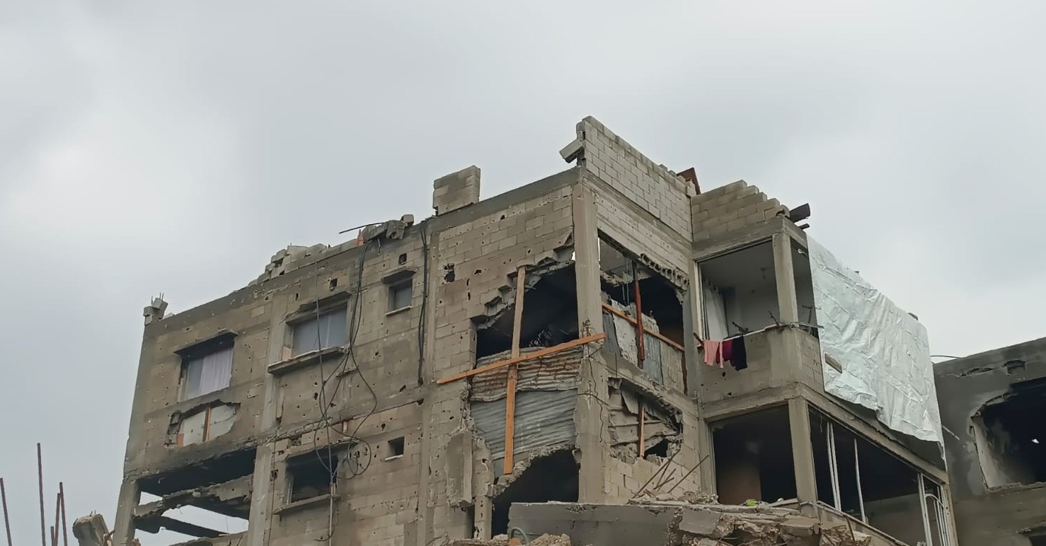 حاليّاً، طالما أنّنا لا نستطيع ترميم المنزل قليلاً، قرّرت وسامح أنّه من الأفضل إبقاء عائلتينا في الخيام. زوجة سامح وأولاده الثلاثة موجودون الآن في خيمة في خان يونس، وزوجتي وأولادي في النصيرات، وأنا وسامح نُقيم في غرفة في شقّتي المهدّمة. شبكة المياه مدمّرة تماماً، وبطبيعة الحال لا توجد هُنا مياه جارية، ولكن هُناك الآن شاحنات توزّع المياه. نحن نضطرّ كلّ يوم إلى الوقوف ثلاث ساعات في الطابور لكي نحصل على حاويتي مياه للشرب، ونستخدمها للطبخ أيضاً. ولا توجد كهرباء أيضاً وشبكة المجاري مدمّرة هي الأخرى.