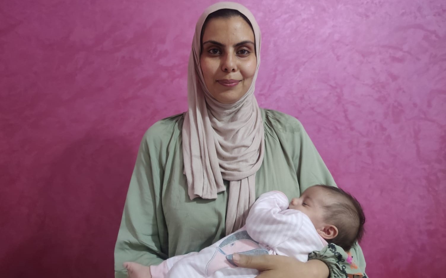 ولدت تيماء صغيرة الحجم، أقلّ من ثلاثة كيلوغرامات. لم يكن لديّ ما آكله بعد الولادة أيضًا، ولم يكن لديّ ما يكفي من الحليب لإرضاعها، ولم أجد أيضًا بدائل الحليب لتكملة نظامها الغذائيّ. خفتُ جدًّا عليها. في شمال القطاع هناك نقص في بدائل حليب الأطفال وفي الحفّاظات أيضًا. ولم تكن هناك أيضًا مياه نظيفة لإعداد الحليب الصناعيّ على الإطلاق، لذلك كان الخيار الوحيد هو الرضاعة الطبيعيّة.
