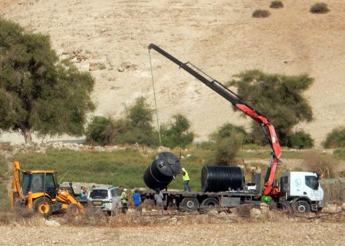 This morning, 20 Feb. 2017, the Civil Administration demolished the home of an elderly woman – a trailer donated by a humanitarian aid organization – in the Palestinian community of al-Mehtiwish, which lies near Khan al-Ahmar on land Israel earmarked for expanding the Maale Adumim settlement. The CA also demolished a water pipe in the Jordan Valley which residents of Khirbet al-Hadidiyah and Khirbet Humsah had laid with the help of humanitarian organization, as Israel refuses to hook up these communities to the water grid. The pipe had been restored by residents after being demolished by the CA on 10 Jan. 2017.