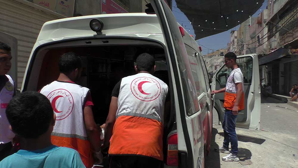 A Red Crescent medical team taking Muhammad Abu Hashhash to hospital. Photo by Musa Abu Hashhash, B’Tselem, 16 Aug. 2016