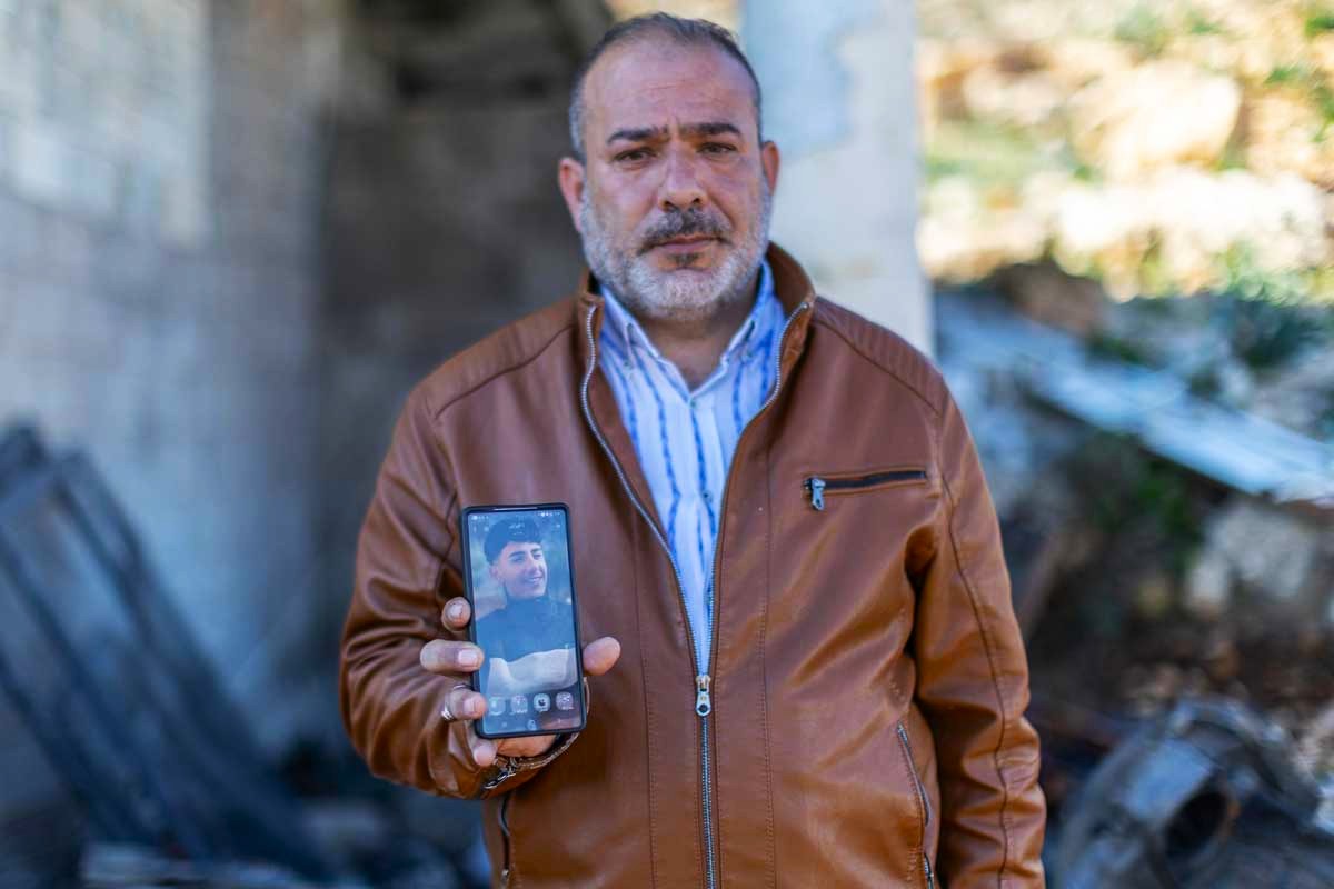 Sa’ed Na’asan with a photo of his son. Photo: Avishai Mohar, B’Tselem