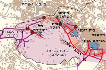 מפת ההגבלות שהטילה ישראל במרכז העיר חברון, כוללת את הרחובות הסגורים לתנועת פלסטינים ברכב וברגל ואת ההגבלות על פתיחת בתי עסק פלסטיניים באיזור. מידע נוסף בנושא