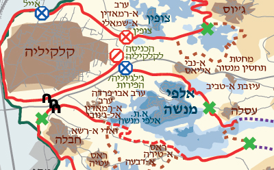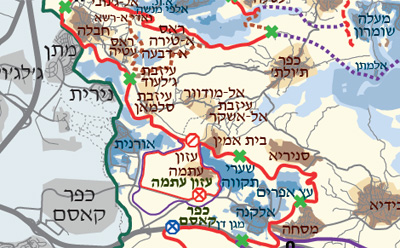 מפה זו מתארת את התוואי העדכני ביותר של מכשול ההפרדה בגדה המערבית, כולל השינויים שנעשו בתוואי באדמת הכפרים הפלסטיניים ואדי ראשה, ג'יוס ובילעין. מידע נוסף בנושא