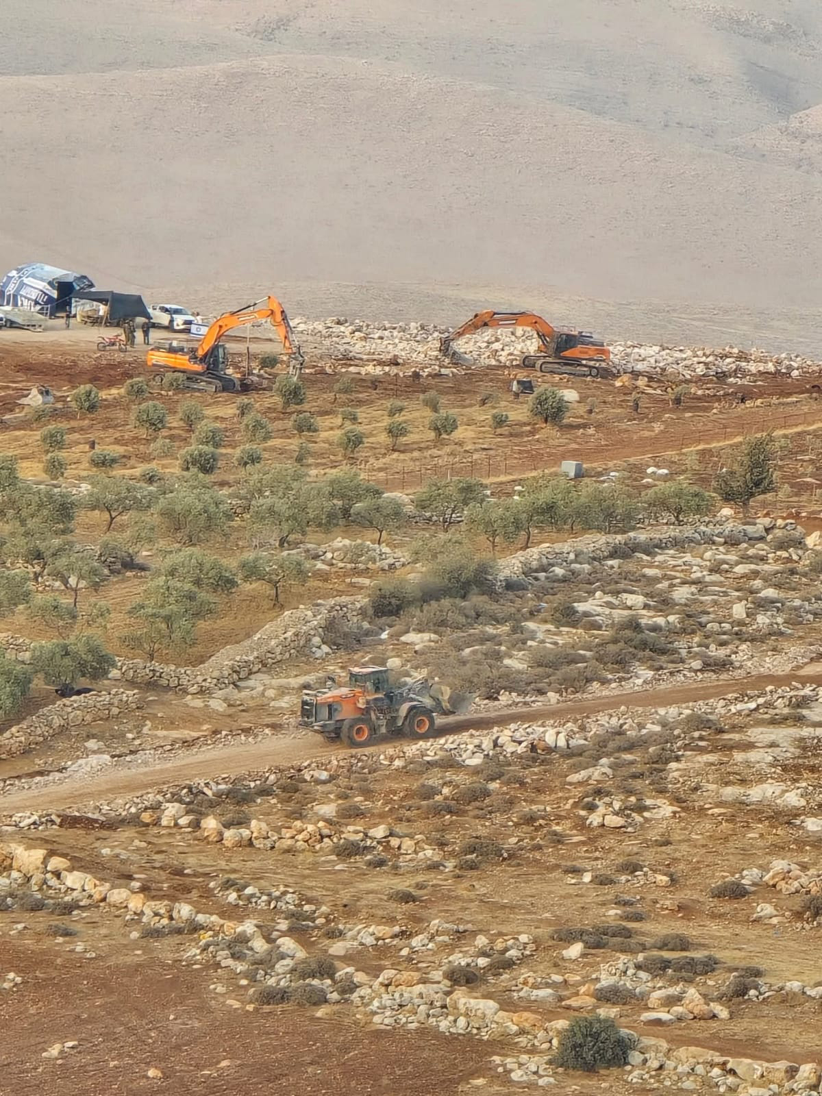 דחפור של מתנחלים פורץ דרכים באדמות הכפר. התמונה באדיבות התושבים