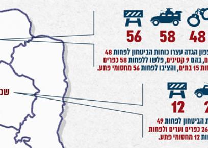 במהלך המחצית הראשונה של חודש דצמבר עצרו כוחות הביטחון לפחות 237 פלסטינים, בהם 61 קטינים, פלשו ללפחות 123 כפרים וערים ולפחות 104 בתים, והציבו לפחות 155 מחסומי פתע. הקליקו כאן לפירוט.
