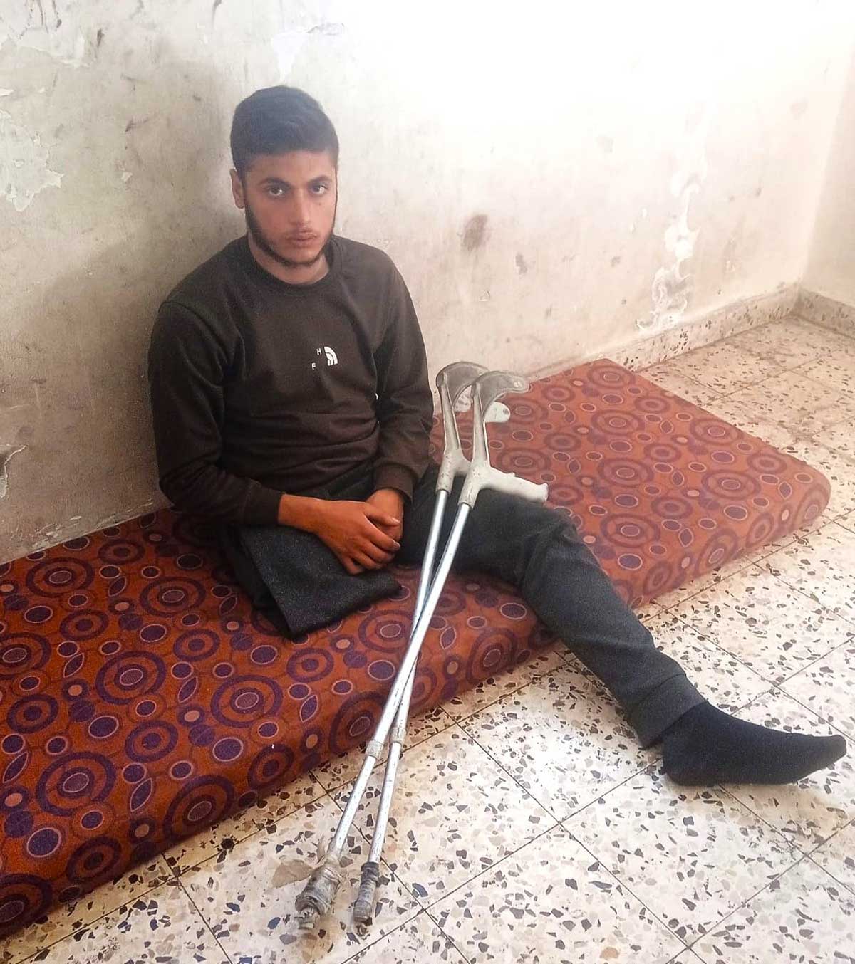 Since then, I’ve been displaced with my family four more times. We moved from tent to tent, and every displacement came with pain and great suffering. I had to walk on crutches and had no access to medical care, medications, or even proper food to heal. We were all suffering constantly from hunger and fear imposed on us by the military.