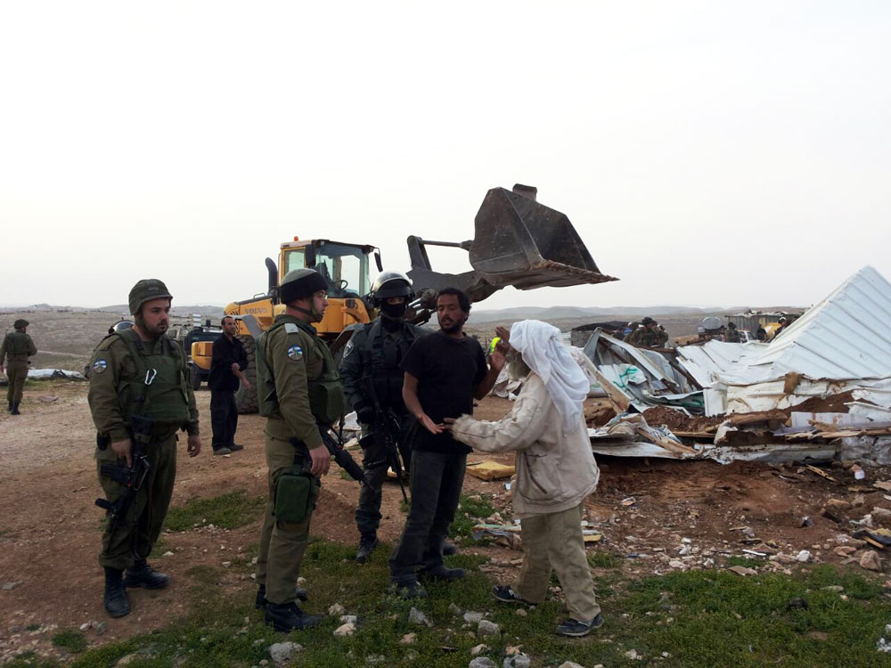 Yesterday, 6 April 2016, Civil Administration and military forces arrived at the community of Um al-Kheir in the South Hebron Hills, near where the settlement of Carmel was built. The forces destroyed six dwellings occupied by six families with 34 members, including 19 minors. Three of the six structures had been donated by European aid agencies.