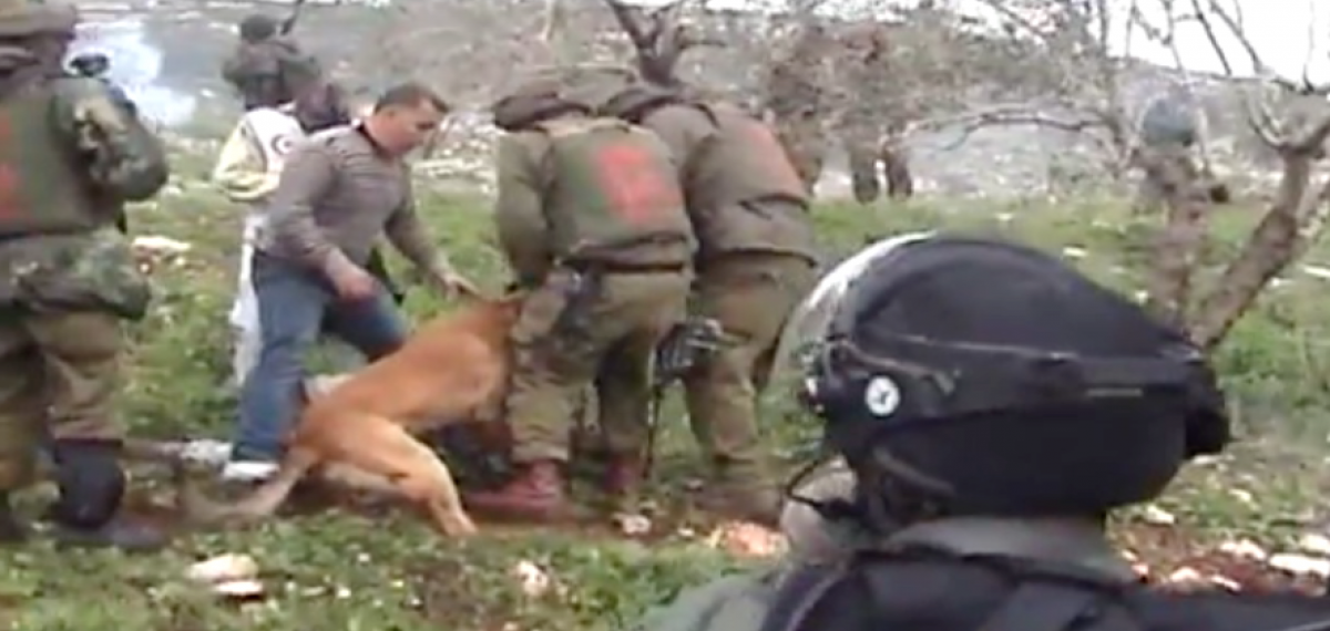 On 3 February 2012, Akram Hanatsheh, age 19, a resident of a-Tabaqa southwest of Hebron, was in the area where there was a confrontation with soldiers in his village. Hanatsheh tried to run away but an army dog chased him, bit his arm and would not let go. Soldiers then came over to Hanatsheh and assaulted him themselves while the dog was still biting his arm.