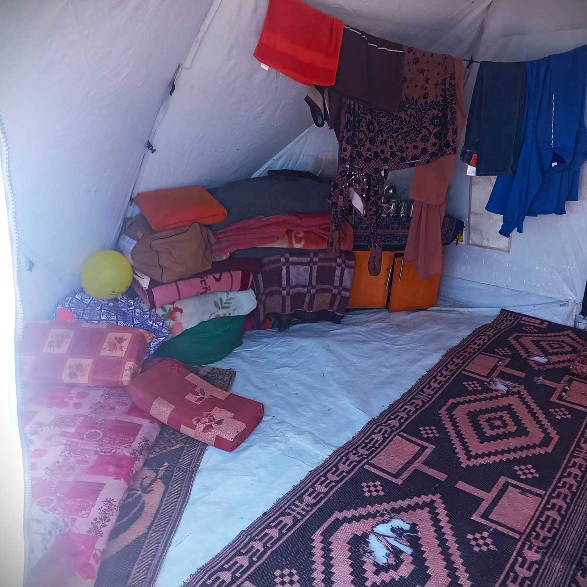 We sit helplessly in our tent, hoping that God will end this war that has taken everything from us: our home, food, peace. I don’t know how we’re getting through the days without food. A few days ago, we got four kilos of a baking mix made of wheat flour, lentil flour, ground pasta, and a bit of yeast. I baked bread from it, but it came out very hard. Still, we eat it just to ease the hunger that’s been gnawing at us for months. We’re just waiting for this war to end.