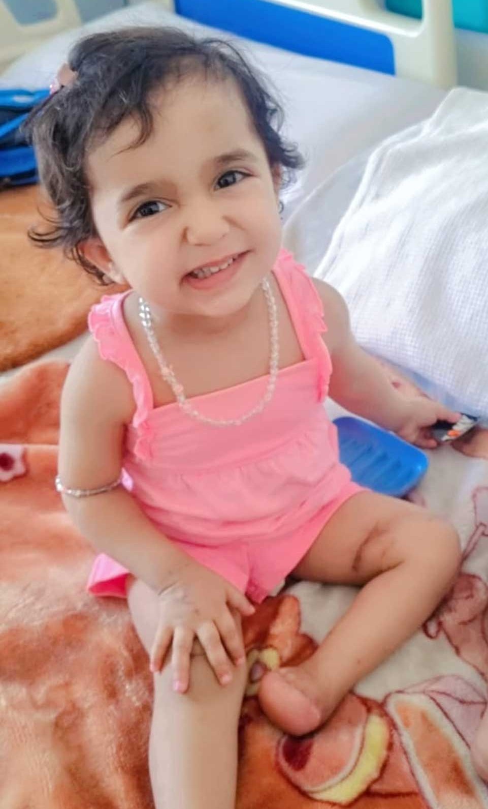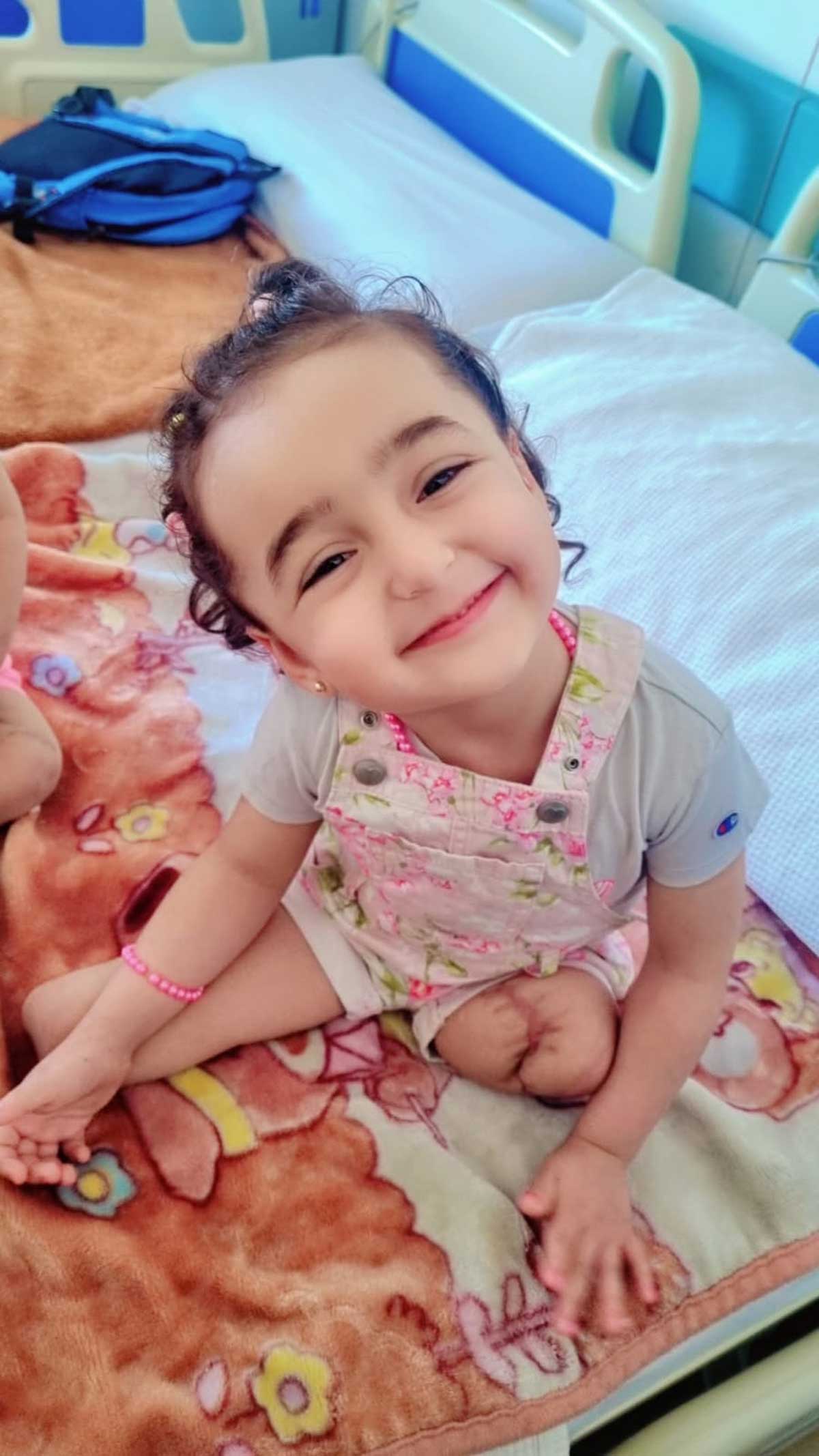 We’re all here in the hospital. Misk and Hanan are patients, and we sleep here next to them, inside the hospital. I’m still waiting for a better treatment solution and for arrangements for me and the children. But in the meantime, I gather it’s difficult to get entry visas to other countries for treatment because they’re all afraid of immigration from Gaza. We may not be able to get visas.